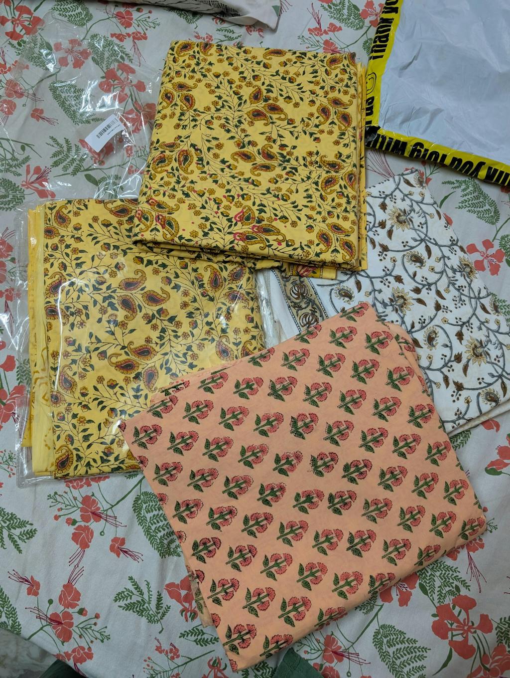 The suit material looks good,novel colour and is comfortable.They should have more variety of this type as the chiffon dupatta is easy to carry