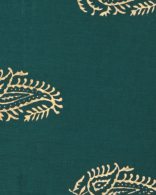 Premium Green Golden Hand Block Print Cotton Suit Sets With Cotton Dupatta CFCOTMU66