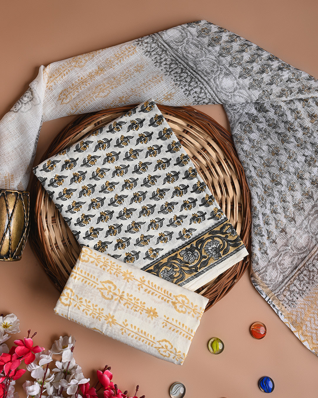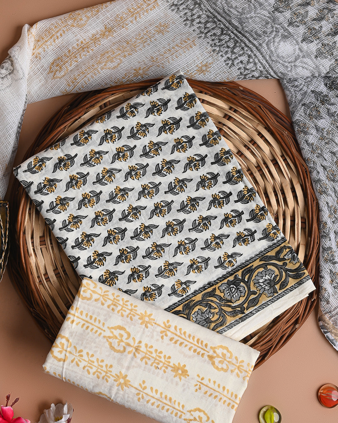 Shop by Collection:Cotton Suit Sets | Black-And-White | Cotton Suit With Kota Doria Dupatta | Cotton Suit With Chiffon Dupatta | Cotton Suit Sets | Dabu Prints