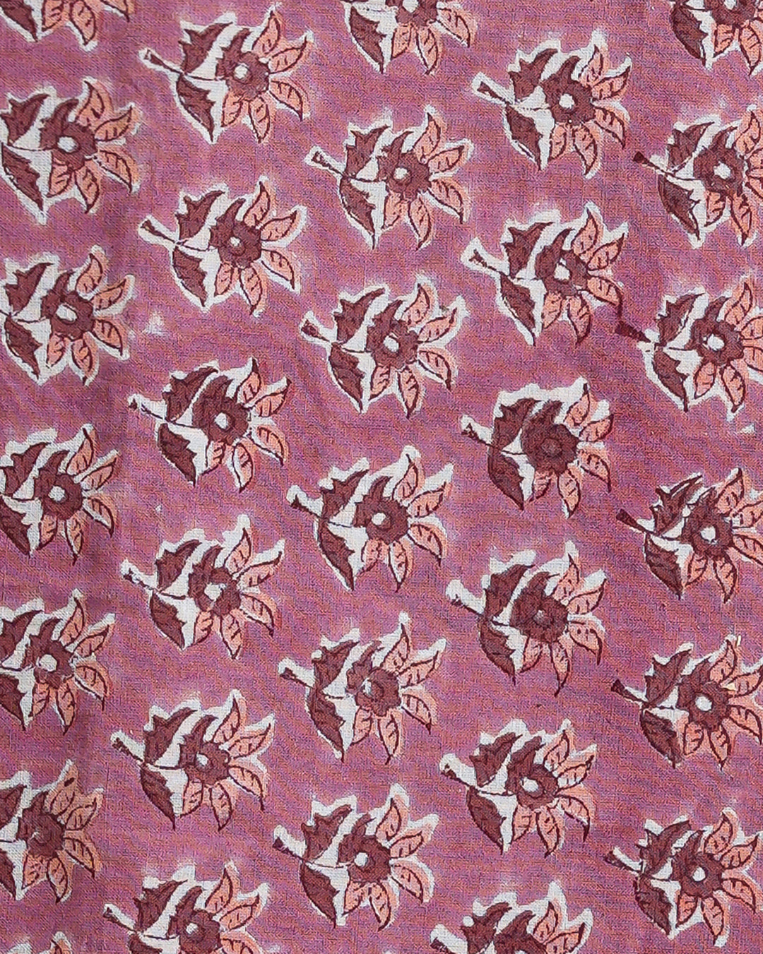 Hand block printing is a centuries old art form that utilizes a hand carved wood block , dipped in dye and stamped by hand onto fabric.